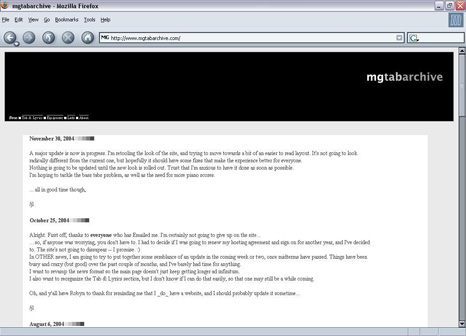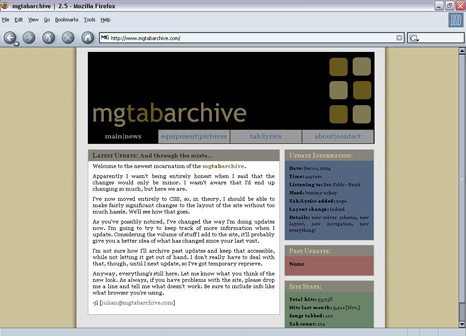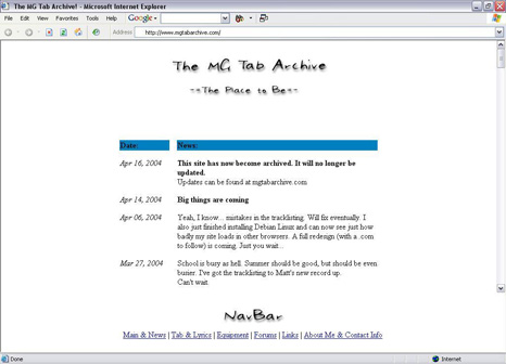 I launched this site with only one goal in mind. I wanted to have somewhere I could rely on to find tab for Matt's work whenever I needed it. I wanted the site to become a quick reference point for myself, and for anyone else who could use it.